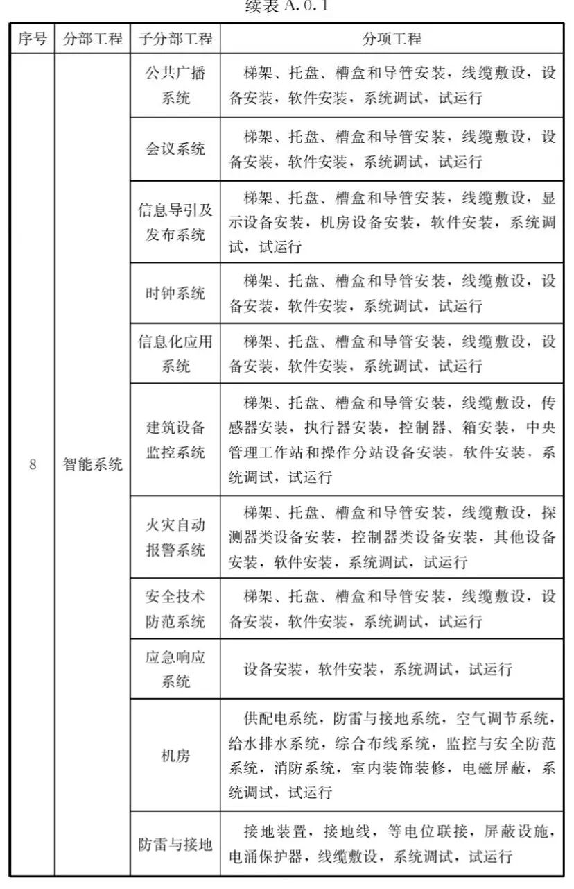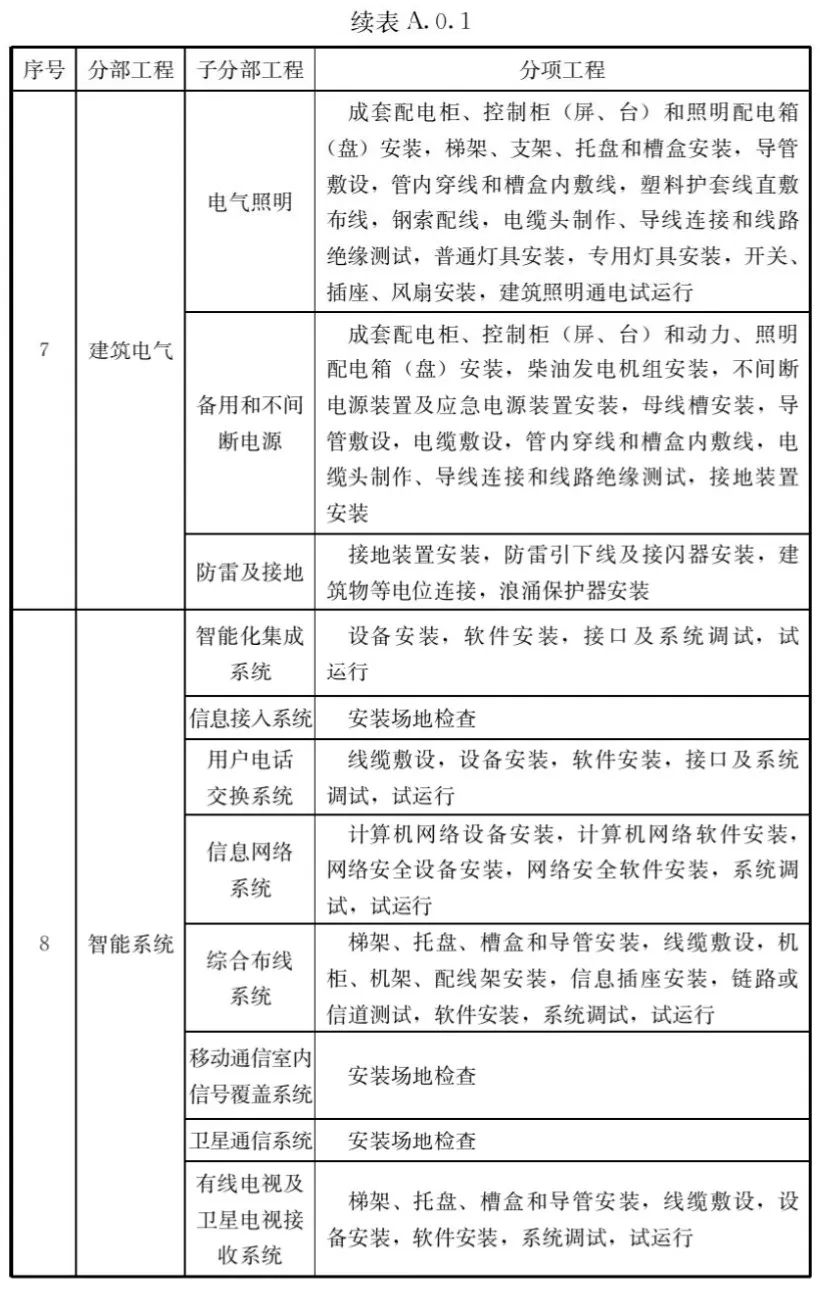 A.0.1建筑工程的分部工程、分項工程劃分應符合表A.0.1的規定。