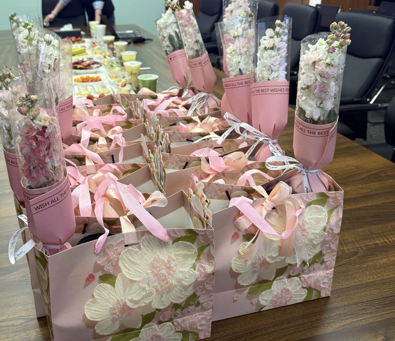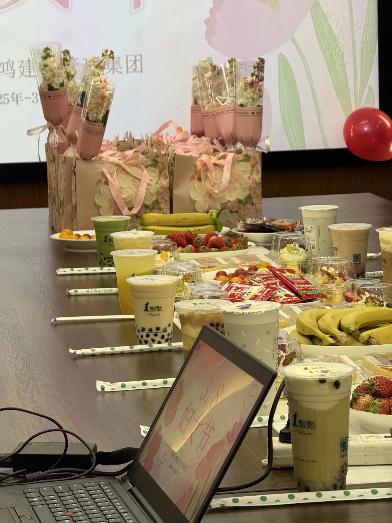 本次活動由行政部盧倩主持。活動伊始,集團為辦公室每位女員工精心準備了鮮花、奶茶、水果和蛋糕。芬芳的鮮花象征著企業對女性員工的尊重與贊美,香甜的奶茶傳遞著溫暖與關懷。豐富多樣的水果和精致可口的蛋糕,不僅滿足了味蕾,更讓每位女員工感受到企業大家庭的溫暖。活動現場洋溢著歡樂祥和的氣氛,處處充滿著節日的喜悅。